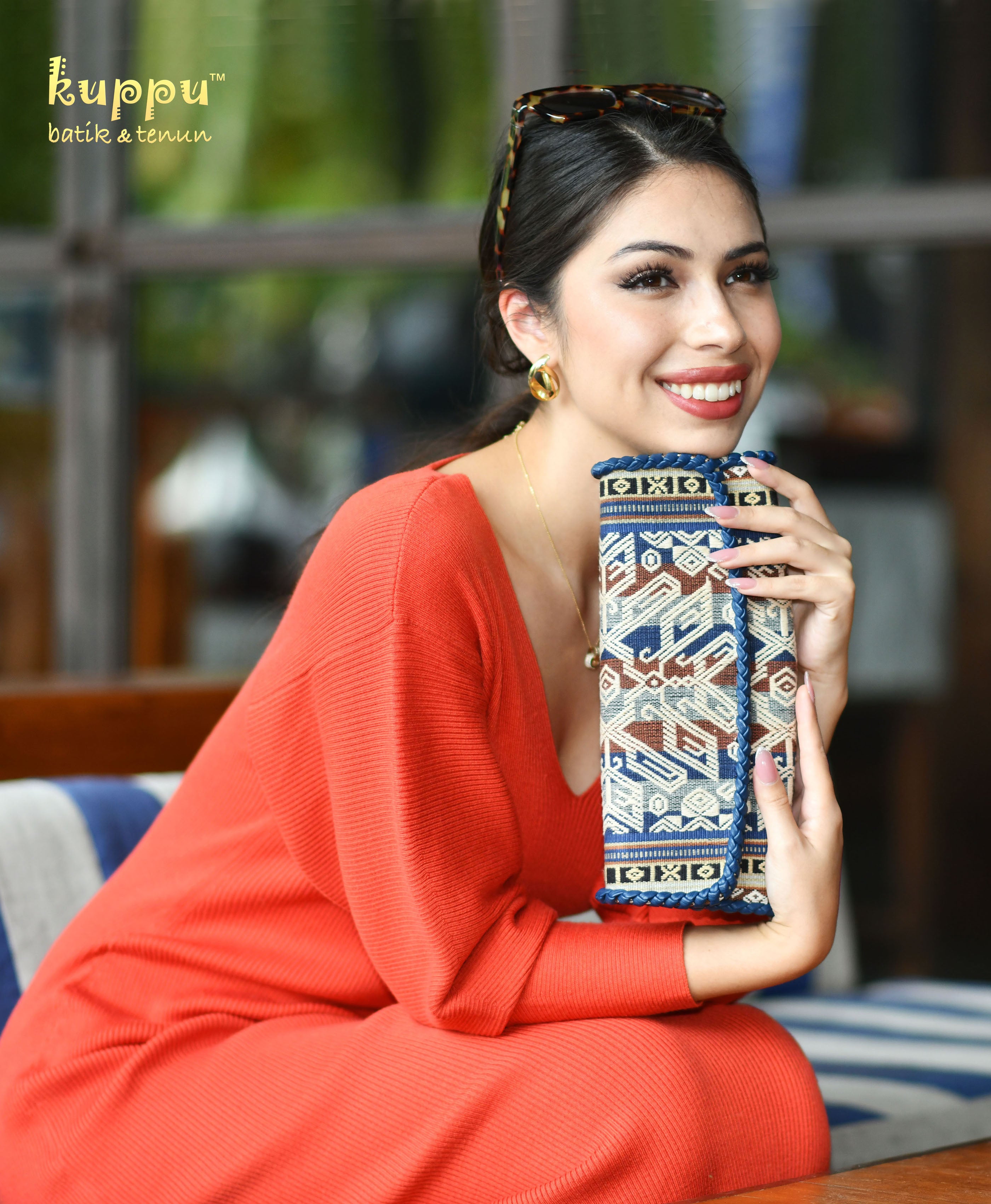 Beautiful handwoven tenun Pahikung from Sumba, NTT, Indonesia Crafted with dark blue Italian cow leather Size 30x14x3.5 cm (LxHxW) Eco-suede fabric lining Magnetic button closure Detachable long strap Weight: 0.3...